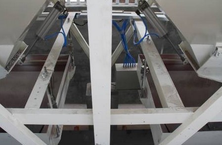 (3)全密封的中儲(chǔ)料倉(cāng)全密封弧形卸料門,具備自鎖功能,防止斷氣出現(xiàn)物料重復(fù)投入攪拌機(jī)。專利號(hào):ZL201320216340.9
